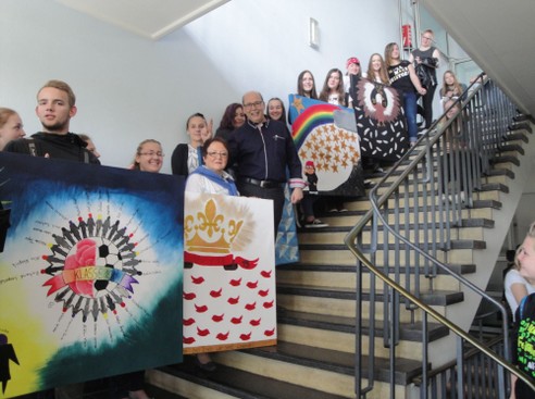 Mit einem lachenden und einem weinenden Auge haben heute alle 136 Zehntklässler das letzte Mal die Schule besucht. Ihre Zeugnisse erhalten sie in der nächsten Woche, am Donnerstag, dem 18. Juni bei einer feierlichen Übergabe im Stadttheater um 11 Uhr. Hierzu sind alle herzlich eingeladen.Geschenk für die Schule überreichten die Klassensprecher Herrn Wiegard eine Mess-Station für Luftdruck, Temperatur und Luftfeuchtigkeit. Sie wird unter der Solarstrom-Anzeige angebracht. Damit sie bei den zukünftigen Schülern nicht in Vergessenheit geraten, haben sie mit der Kunstlehrerin Angelika Heße für jede Klasse großformatige Leinwände gestaltet, die im Treppenflur des Hauptgebäudes aufgehängt werden. Des Weiteren bedankten sie die Schülerinnen und Schüler herzlich bei dem Hausmeister Herrn Kemmerling und den Sekretärinnen Frau Scholz und Frau Klotz für die Unterstützung in allen sechs Jahren.wünschen den Zehntklässlern eine tolle Abschiedsfeier und für ihre Zukunft alles erdenklich Gute!
